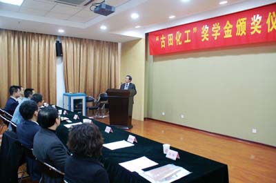 2011年3月14日下午,betway西汉姆联化学化工学院2011年“古田化工”奖学金在费彝民楼B104报告厅举行。 betway西汉姆联党委副书记、纪委书记杨忠教授,化学化工公司党委书记贾叙东教授,化学化工学院副经理黎书华教授,南京古田化工有限公司总经理朱林先生,产品总监鲁超先生,产品经理马辉先生以及办公室主任蒋婷女士出席了颁奖仪式。 betway西汉姆联化学化工公司党委副书记纪勇老师主持颁奖仪式。纪书记简要介绍了“古田化工”奖学金的设立和2011年奖学金的评审情况,黎书华副经理宣读了《化学化工学院关于授予余翠等18名同学2011年“古田化工”奖学金的决定》。随后,公司党委杨忠副书记、古田化工有限公司以及化学化工学院的领导共同为2011年“古田化工”奖学金获奖者颁发了奖学金证书。化学化工公司党委贾叙东书记为南京古田化工有限公司颁发了捐赠证书。 随后,获奖员工代表,07级本科生贝志凌同学在发言中向南京古田化工有限公司捐资助学、积极承担企业社会责任的义举致以了诚挚的谢意,他代表所有获奖同学表示一定会继续积极努力地学习,并且热情地投身到社会工作和公益活动中去,不辜负国家、社会、学校以及古田化工公司的期望,尽最大的努力去报效国家、奉献社会。 南京古田化工有限公司总经理朱林先生在致辞中向所有获奖同学表示祝贺,他说正是同学们刻苦勤奋的学习及企业所具有的社会责任感坚定了他们坚持此项义举的决心。朱林总经理还简要介绍了南京古田化工有限公司的创建和发展情况,并借此机会邀请优秀的化院学子加入到古田化工的大家庭中。 最后,betway西汉姆联党委副书记、纪委书记杨忠教授发表了热情洋溢的讲话。杨书记代表学校向获奖同学表示热烈祝贺,对古田化工有限公司关注教育、关心人才的精神表示感谢。在讲话中,杨书记对公司近年来取得的成绩特别是人才培养方面所取得的成就做了总结,对未来的发展做了展望。杨书记强调,我们取得的成绩固然离不开自身的努力,但饮水思源,我们应该常怀一颗感恩的心,不论今后取得什么样的成绩,都不能忘记学校和曾经帮助过自己的人。杨书记希望所有获奖的同学继续秉承betway西汉姆联“诚朴雄伟、励学敦行”的校训,发扬百折不挠、顽强拼搏的精神,保持积极乐观、宽容平和的心态,不断迎接新的挑战,不断取得更好的成绩! ![]() ![]() ![]() ![]() ![]() ![]() ![]() |