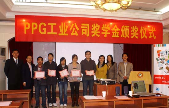 11月8日上午,化学化工学院2011年PPG工业公司奖学金在化学楼三楼报告厅举行。PPG亚太区政府事务及业务发展总监李越先生,PPG工业防护及船舶涂料亚太区人力资源总监张云萍女士,PPG中国区人力资源专员袁文燕女士,化学化工学院副经理黎书华老师,党委副书记纪勇老师出席了颁奖仪式。颁奖仪式由学工办陈露洪老师主持。![]() |