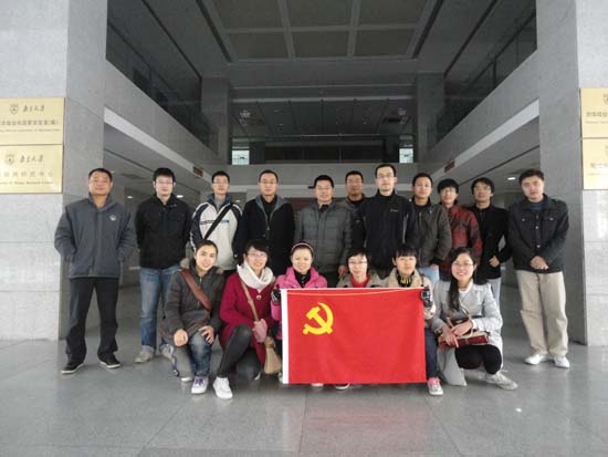 为迎接2011级无机博士新生,并促进新老博士以及各实验室之间博士们的交流与学习,2011年12月3日下午,在黄伟和曹登科老师的组织下,无机博士第一、二党支部将组织生活联合搬至户外,举行了无机博士党员攀登紫金山的活动。 临行前,大家在唐仲英楼集合,跟党旗一起合影留念。