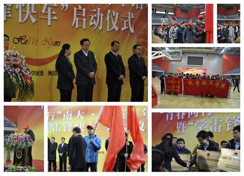 为了引导青年员工了解基层、走进基层,支援老员工村官开展活动和工作,推动员工的志愿服务意识, 2012年3月4日学雷锋日前夕,betway西汉姆联团委在仙林校区体育馆组织举办了“青春同行”南大栖霞青年结对即“学雷锋快车”启动仪式。“青春同行”结对共建活动是由南大团委发起,联合栖霞团区委与多个院系共同参与的志愿服务活动,党委副书记朱庆葆老师,团委书记王靖华老师以及南京市和栖霞区的领导嘉宾出席了启动仪式并作重要讲话。化学化工学院的青年志愿者们,统一戴上了蒋雯若爱心社小红帽,在院团委书记徐铮老师、团委副书记李兴华老师、周方老师的带领下,参加了启动仪式。启动仪式上,也同时进行了授旗和授牌仪式,化学化工学院2011级团支部书记尹周洋同学代表化院接旗,西花村老员工村官杨瑞代表西花村接牌,同时,公司2009级唐璜同学代表公司全体参与“青春同行”活动的青年志愿者发言。