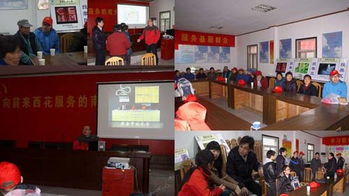 启动仪式结束后,化学化工学院团委青年志愿者组织——蒋雯若爱心社的同学们即直奔栖霞区西花村社区,开始了“青春同行”南大·栖霞青年结对行动的第一次实践活动。针对栖霞街道西花村社区的特点,在前期充分调研的基础上,化院蒋雯若爱心社的师生们就根据公司特点和资源简要拟定了定点服务活动安排,目前已经确定了近半年的具体活动时间和安排。首次活动中,院团委书记徐铮老师利用自己的专业知识开展了一堂《生活中的化学》为主题的科普讲座,用丰富的事例和精心准备的内容解释了生活中的一些常见化学现象,并解答了村民在农业生产生活中的小困惑;蒋雯若爱心社的同学们与西花村的孩子们结成一对一的互助对子,指导孩子们的英语、语文、数学等科目的学习,并进行了简单的互动游戏,在欢声笑语中增进了彼此了解,孩子们的家长和年轻的老员工村官也积极的参与到互动环节之中。听取了讲座以后,到场村民代表与同学和老师们开展了一系列的讨论与交流,分享心得。 虽然原定的实地考察等环节因为天气的影响而推迟,但早春的丝丝寒意阻挡不了蒋雯若爱心社志愿者们的热情。本次活动只是蒋雯若爱心社与西花村结对子活动的开始,本学期中,我们将继续因地制宜,发挥专业所长,在农村环境卫生、生活食品安全、基层组织满意度调查和提升等方面开展更多志愿服务活动。![]() ![]() ![]() ![]() ![]() |