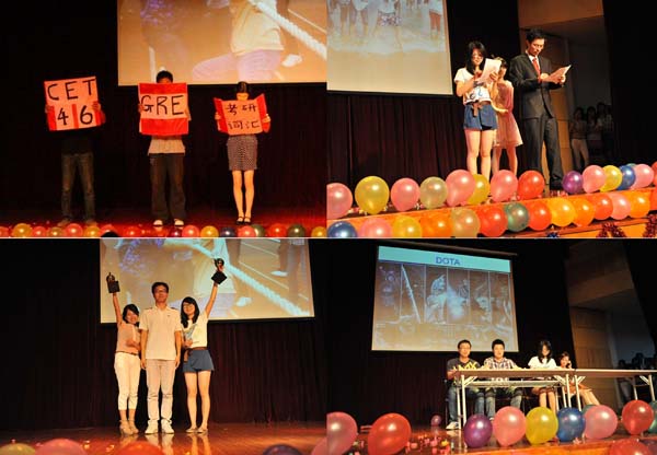 | 6月19日晚7时,在一曲活力四射的开场舞的引领下, “Young帆起航”化学化工学院2012届本科生毕业晚会在科技馆一楼精彩上演。此次晚会经过一个多月的精心准备,策划、导演、编排、节目演出均由公司08级的员工担纲,节目丰富多彩,有歌舞、魔术、相声、歌曲联唱,有男角反串的歌舞“新贵妃醉酒”,更有独具化院特色的音乐剧“最炫化学风”。化学化工公司党委书记贾叙东、副书记纪勇,副经理朱成建、李育佳,化学实验教学中心主任张剑荣教授以及部分核心课程的教学老师现场观看了同学们的演出,并参与了师生互动环节,教授物理化学的名师侯文华教授也为现场的观众高歌一曲“再回首”。整个晚会始终洋溢着怀旧、欢乐的气氛,同学们的精彩演出不时博得了观众们的阵阵喝彩。最后,反映化院学子四年生活的走秀节目“花样年华”将晚会推向高潮。 四年了,心中有太多形容词想送给你:团结有爱的chem08,积极向上的chem08! 化院明天更精彩,母校明天更辉煌! ![]() ![]() ![]() ![]() ![]() ![]() ![]() ![]() ![]() ![]() ![]() ![]() ![]() |