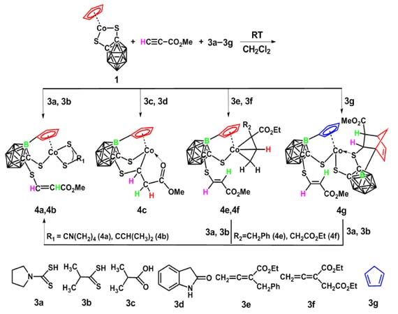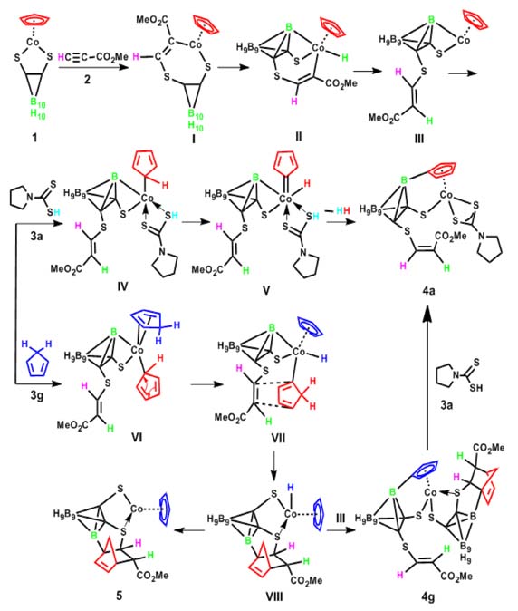 最近, 燕红课题组通过加入可提供3个电子(3e)的有机分子诱导Co金属实现了室温下B-H及C-H键的同时活化,建立了碳硼烷、环戊二烯基(Cp)两个惰性基团通过B-C键的直接连接, 获得了新型的碳硼烷功能化基团 Cp 配体 (发表在J. Am. Chem. Soc. 2012, 134, 10341-10344)。 研究发现该类反应需要可提供3e的有机配体及活泼端炔烃(图1)。通过NMR及质谱跟踪检测反应中间体、氘代实验跟踪氢原子迁移以及GC检测反应生成的小分子H2等手段对Co诱导的B-H及C-H键活化机理进行了详细的研究(图2), 同时还发现了CpH、Cp 的多样反应性。这些结果不仅拓展了碳硼烷B-H键活化及功能化范围, 而且为金属有机化学机理的研究提供了实验依据。 该项研究的创新性在于通过便宜的Co金属在室温下即有效实现了不活泼B-H及C-H键的同时活化,并通过实验证实了提出的机理。 ![]() ![]() |