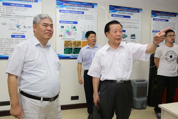 2013年8月5日上午,在国家自然科学基金委组织专家对公司陈洪渊院士主持的国家重大科研仪器设备研制专项“单细胞时空分辨分子动态分析系统”进行现场考察之际,公司党委书记洪银兴教授、董事长陈骏教授先后来到生命分析化学国家重点实验室视察。