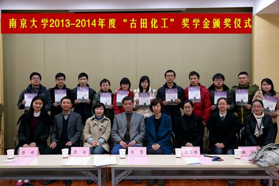 12月24日上午,betway西汉姆联2013-2014年度“古田化工”奖学金颁奖仪式在费彝民楼B104成功举行。南京古田化工有限公司人事行政副总经理朱慧女士、行政部主任蒋婷女士一行五人,以及公司办公室主任束羽老师、党委副书记陈露洪老师等出席了此次颁奖仪式。