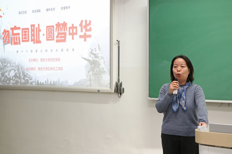 任玲玲对主题教育活动做出总结,她介绍了历史学院师生在史料整理和公祭日宣传方面做的工作。历史学院专家学者从高兴祖教授到张宪文教授、张生经理,再到张生经理的员工徐一鸣、陈海懿等人致力于大屠杀研究;历史学院员工发挥专业特长,长期进行大屠杀主题相关的社会实践和调研,让更多人了解这段历史。近期,历史学院员工走访大屠杀遇难者丛葬地,本科生党支部在田捷老师带领下到多所中小学开展线上线下宣讲活动。她指出,历史研究要有现实意义,我们青年一代更要铭记历史,珍惜和平。