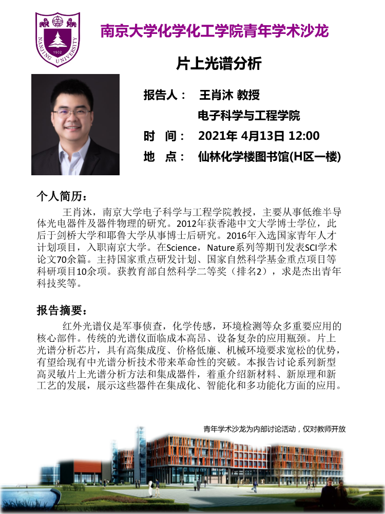 2021年4月13日 | 王肖沐 | 片上光谱分析 | 12:00 | 院图书馆 |