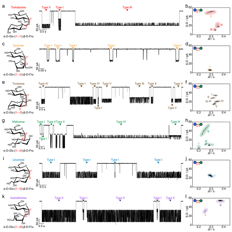 图1:六种α-D-吡喃葡萄糖基-D-果糖异构体的纳米孔检测