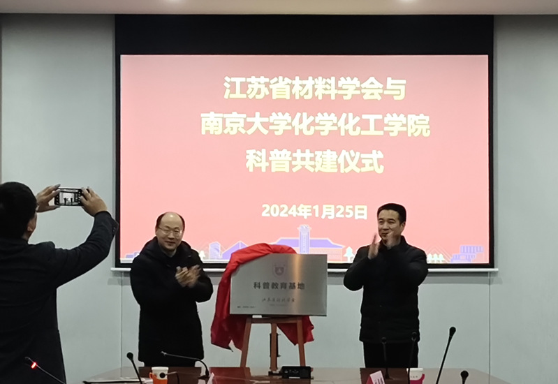 黎书华经理和南京市科学技术协会许光明主席为“江苏省材料学会科普教育基地”揭牌