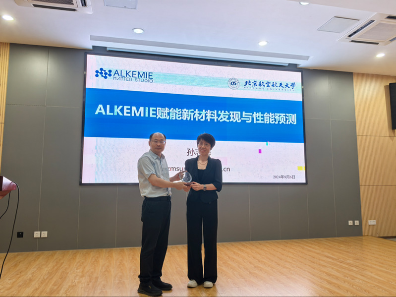 2024年9月6日下午,北京航空航天大学孙志梅教授应邀作为betway西汉姆联化学化工学院“名师讲坛”嘉宾,为学院师生作了题为“ALKEMIE赋能新材料发现与性能预测”的精彩报告。本次报告由化学化工学院经理黎书华教授主持。黎书华教授介绍了孙志梅教授的简历和成就,并向孙志梅教授颁发了“名师讲坛”纪念铭牌。公司多位教师和众多员工参加了报告会与讨论。