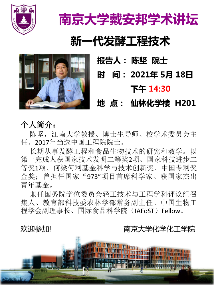 5月18日戴安邦学术讲坛-陈坚院士:新一代发酵工程技术