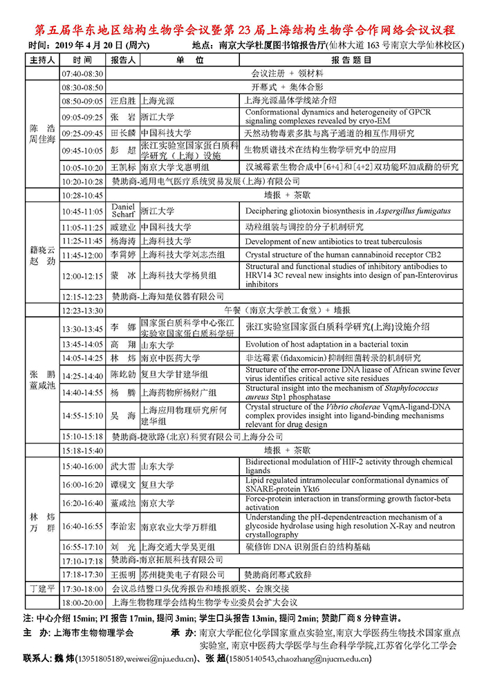 第五届华东地区结构生物学会议暨第23届上海结构生物学合作网络会议议程