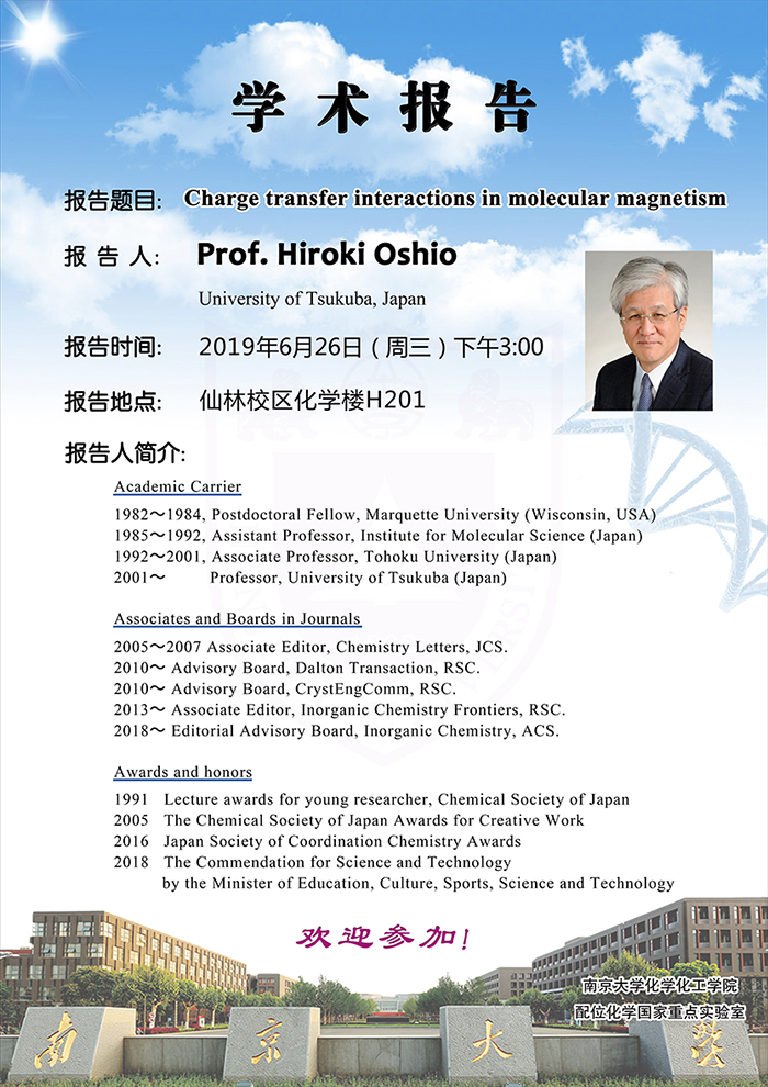 2019年6月26日Prof. Hiroki Oshio学术报告