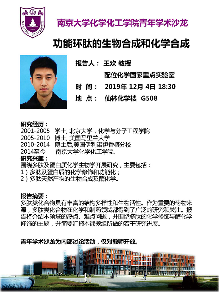 12月4日青年学术沙龙—王欢教授:功能环肽的生物合成和化学合成
