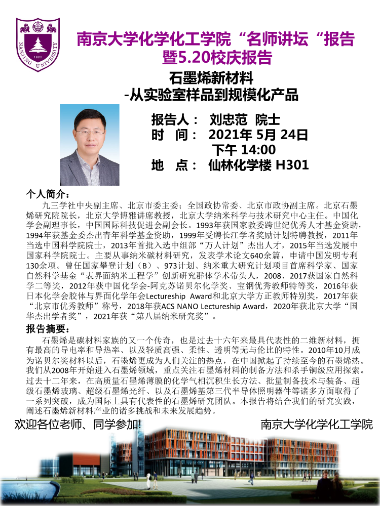 5月24日名师讲坛-刘忠范院士:石墨烯新材料-从实验室样品到规模化产品