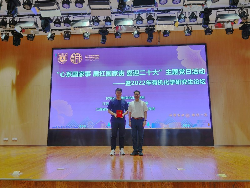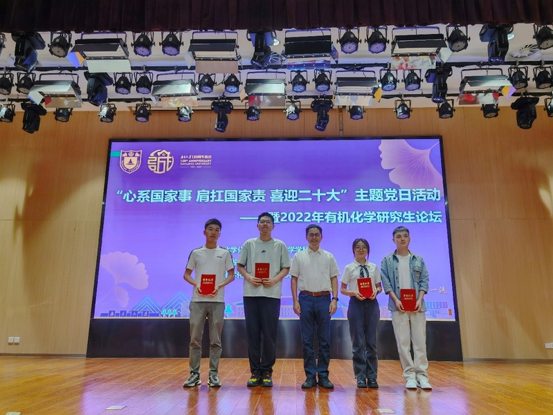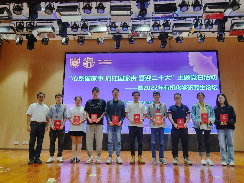 9月23日,为迎接中国共产党第十九届中央委员会第七次全体会议和中国共产党第二十次全国代表大会召开,有机化学学科在仙林校区化学楼报告厅H301举行了“心系国家事肩扛国家责喜迎二十大”主题党日活动暨2022年有机化学研究生论坛,学科全体研究生、教师和党员近250人参与活动。