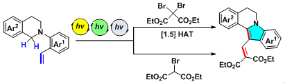 137.Jian Cheng, Jin Xie,* Chengjian Zhu*, ''Relay Photocatalytic Cascade Reaction: Synthesis of Indolo[2,1-a]isoquinoline Derivatives via Double C(sp3)-H Bonds Functionalization'',Chem. Commun., 2018, 54, 1655.